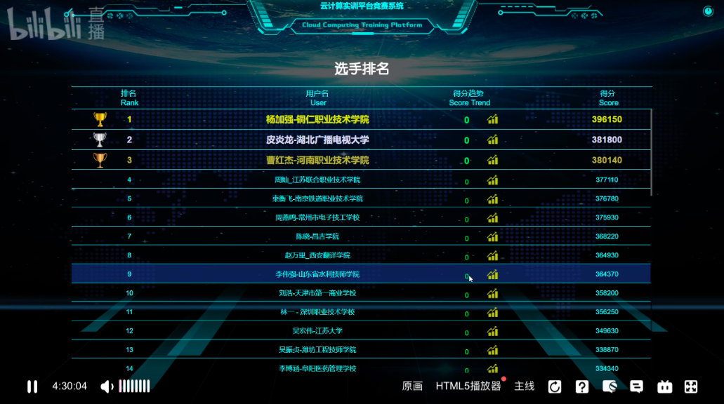在练兵后半段,排名暂时靠后的选手毫不松懈,黑马不时出现,其激烈程度可想而知。18点,练兵圆满落下帷幕,本场胜出的十位选手脱颖而出。至此为止,进入到“云计算技能在现终考”的选手全部公布,具体名单如下: