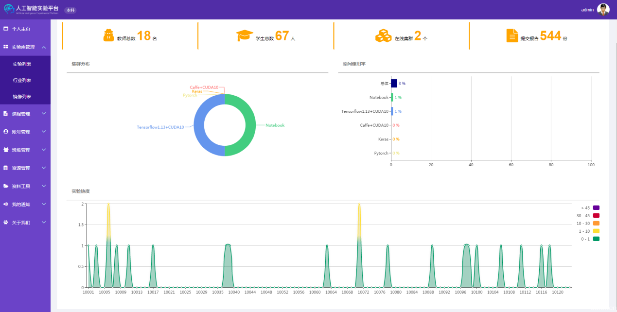 2.实验时,系统预先针对人工智能实验内容构建好一系列基于CentOS7或Ubuntu的特定容器镜像,通过Docker在集群主机内构建容器,为每个使用平台的用户开辟隔离的实验环境。